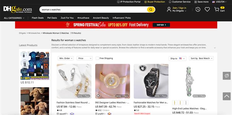 DHgate is a cross-border wholesale marketplace where buyers can browse watch listings from different suppliers.