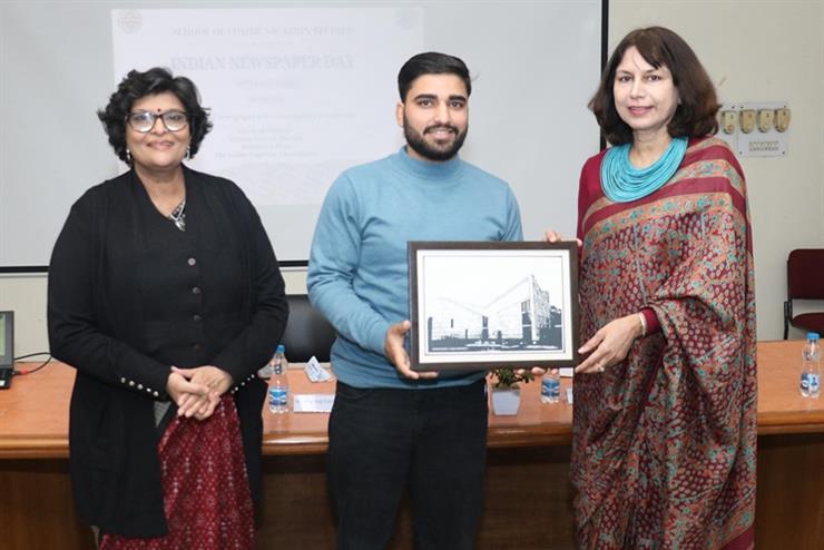Department Chairperson Prof. Archana R Singh outlined the history of Indian newspapers that began with the Hickey’s Bengal Gazette, the importance of National Newspaper Day and how newspapers are a popular source of authentic and reliable information in today’s time. She talked about the journey of Manraj Grewal as an alumnus of SCS and highlighted how SCS continues to develop strong relations with its alumni.