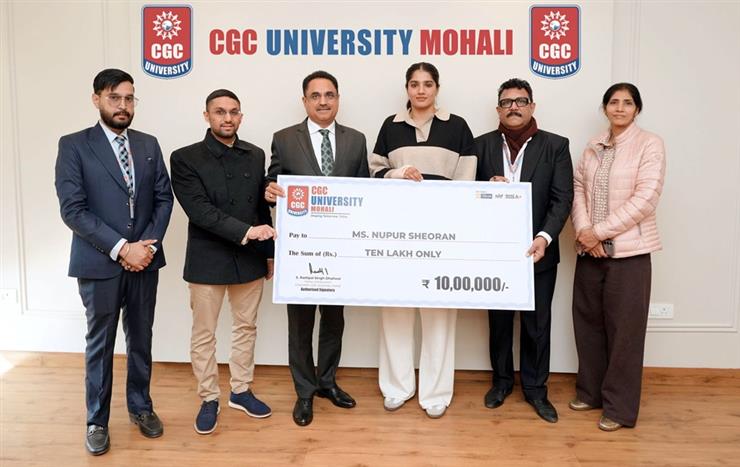 MOHALI: CGC University Mohali, a leader in education and sports, celebrated the extraordinary achievement of its Brand Ambassador and World Cup Gold Medalist boxer, Ms. Nupur, by honoring her with a cash prize of ₹10 Lakh. Nupur brought laurels to the University and the nation by winning the Gold Medal at the World Cup held from November 16 to 20, 2025, in Greater Noida, Uttar Pradesh. This international event was organized by the Boxing Federation of India in association with World Boxing, featuring over 130 elite athletes from 18 countries.