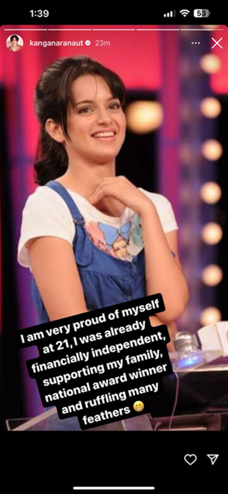 Kangana took to her Instagram stories, where she shared a throwback picture of herself when she was 21.