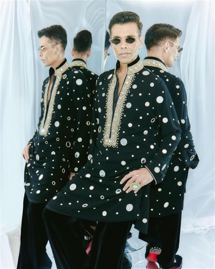 In the photos, KJo could be seen dressed in a stylish black kurta pyjama that he paired with chic sunglasses and ring. The pictures show him striking different poses for the camera.