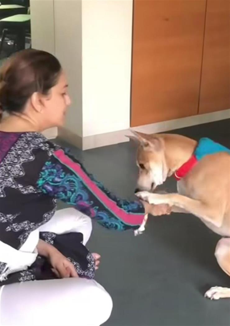 The video montage opens with Madhuri seated on the floor as one of their pet dogs gently places its paw in her hand, offering a cute handshake. In another clip, she is seen feeding treats to their pets while sitting on a wooden floor, and making them learn discipline and basic gestures. Another candid moment shows Dr Nene holding their fluffy brown pet close to the camera and in another clip, the family can be standing together as their dogs excitedly wag their tails around and jump on them. The montage also features Dr Nene strumming a guitar while one of the curiously stands up against him, wondering out of curiosity.