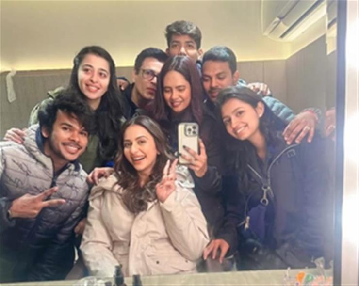 In the mirror selfie, Rakul is seen making a victory sign as she poses alongside her team members.