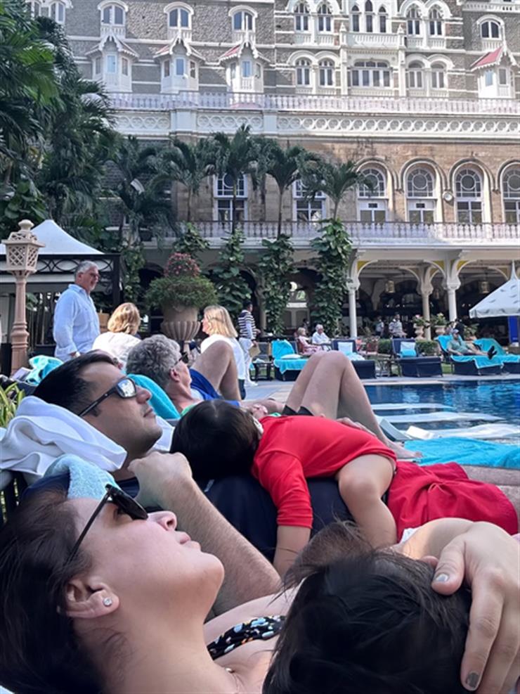 From posing for a perfect family pic to relaxing time by the poolside, to cutting the cake, their anniversary celebration seemed a wholesome family affair.