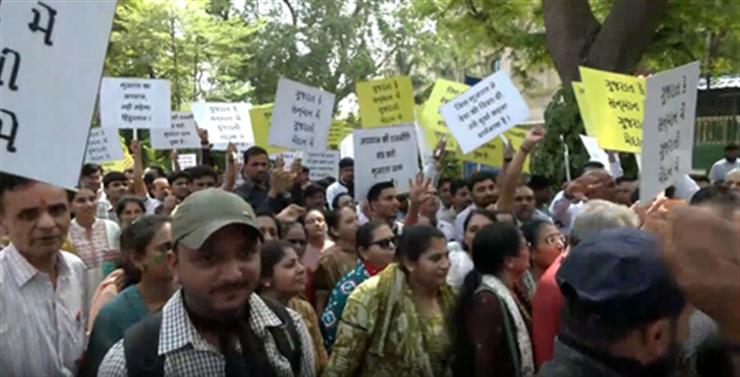 NEW DELHI: The Bharatiya Janata Party (BJP) on Wednesday accused the Congress party of pursuing “tukde-tukde gang” politics, as members of the Gujarati community staged a protest in Delhi against remarks made by Congress President Mallikarjun Kharge.