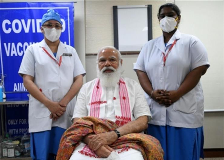 Modi was administered Bharat Biotech's Covaxin. "Took my first dose of the COVID-19 vaccine at AIIMS, " he informed on Twitter.