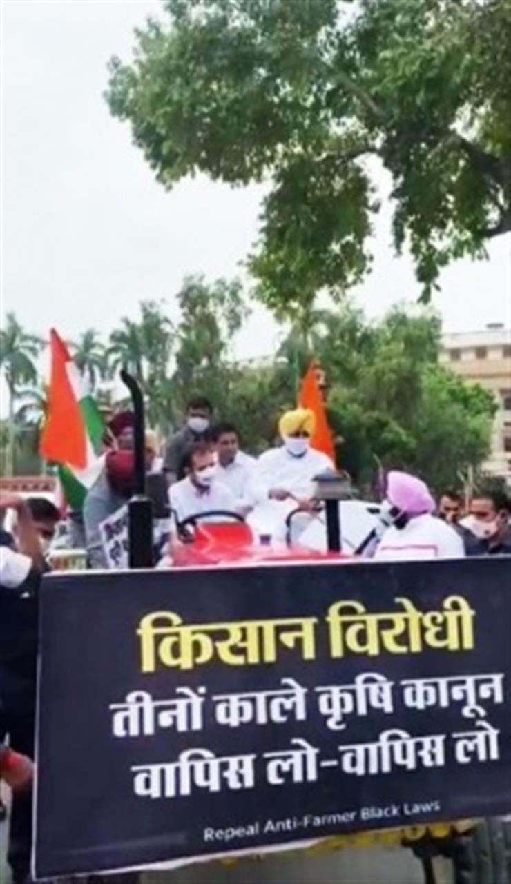 Rahul Gandhi along with several party members drove a tractor to Parliament with a big boarding demanding repealing of three farm laws.