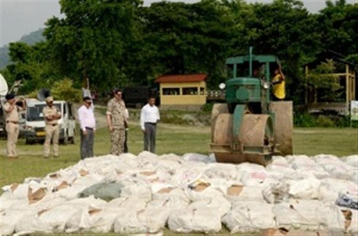 An Assam police spokesman said that 935 kg of seized drugs were destroyed at Hatishila Daampara under Pragjyotishpur police station, which include a considerable amount of heroin, cannabis and highly addictive 19, 00, 000 methamphetamine tablets and more than 3, 70, 000 bottles of cough syrup.