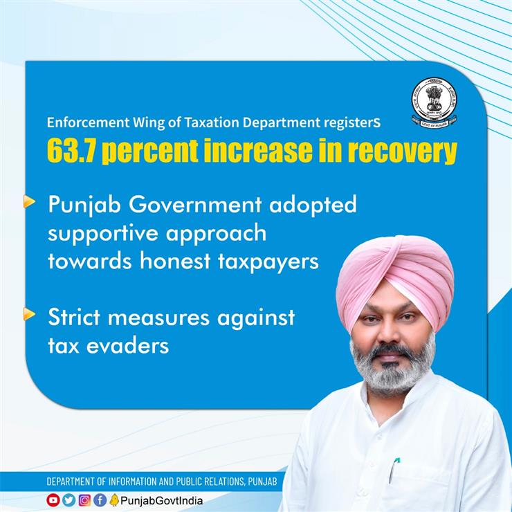 Revealing this, the Excise and Taxation Minister said that the Chief Minister Bhagwant Mann led Punjab Government has adopted a supportive approach towards honest taxpayers and efforts are being made to resolve their grievances at the earliest. On the other hand, strict measures are being taken against tax evaders.
