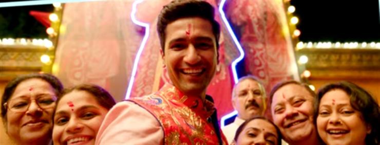 The trailer shows Vicky as Bhajan Kumar, a young man with a vibrant life, a big loving family who is the master of bhajan singing and is fully rooted into the traditions of his family.