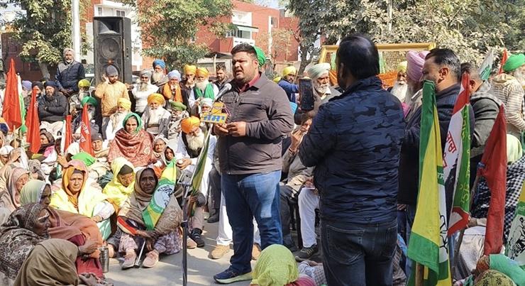MANSA: RTI activist Manik Goyal participated in the protest organised by the Samyukt Kisan Morcha (SKM) at Mansa on behalf of the “Press Di Aazadi Bachao Sangharsh Committee” and expressed solidarity with the farmers’ movement.