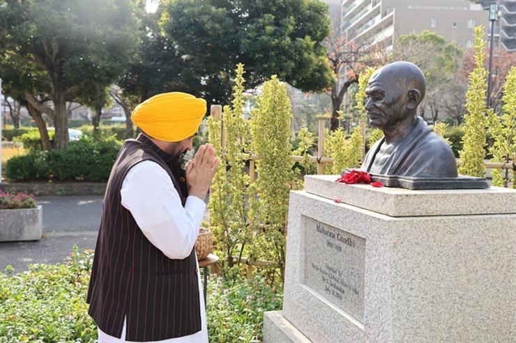 CHANDIGARH: On the first day of his visit to Japan, the Punjab Chief Minister Bhagwant Singh Mann on Tuesday paid floral tributes to father of nation- Mahatma Gandhi at Edogawa Gandhi Park in Tokyo.