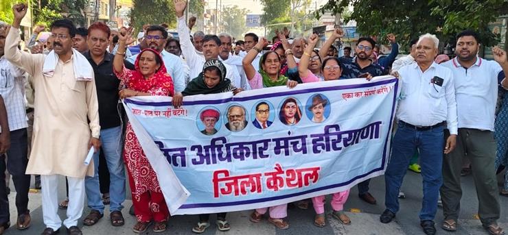 All the public organizations held a meeting at Jawahar Park Kaithal and then demonstrated. It was presided over by Amrit Lal, senior partner of Dalit Adhikar Manch and coordinated by Shiv Charan, District Head of SKS and State Deputy Convenor of Dalit Adhikar Manch. The organization expressed deep anger over the institutional murder of Y Puran Kumar, demands an impartial investigation into the entire matter and demands strict action against the culprits. Dalit Adhikar Manch Haryana expresses deep condolences to the wife IAS officer Amneet P Kumar and other family members of Y Puran Kumar.