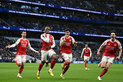 LONDON: Arsenal produced a dominant display to retain its five-point lead at the top of the Premier League and ease talk of late-season nerves with a 4-1 win away to Tottenham Hotspur in the north London derby.