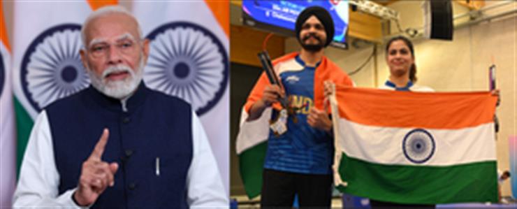 NEW DELHI: Prime Minister, Narendra Modi congratulated Indian shooters, Manu Bhaker and Sarabjot Singh for clinching bronze medal in the 10m Air Pistol Mixed Team event at Paris Olympics 2024.