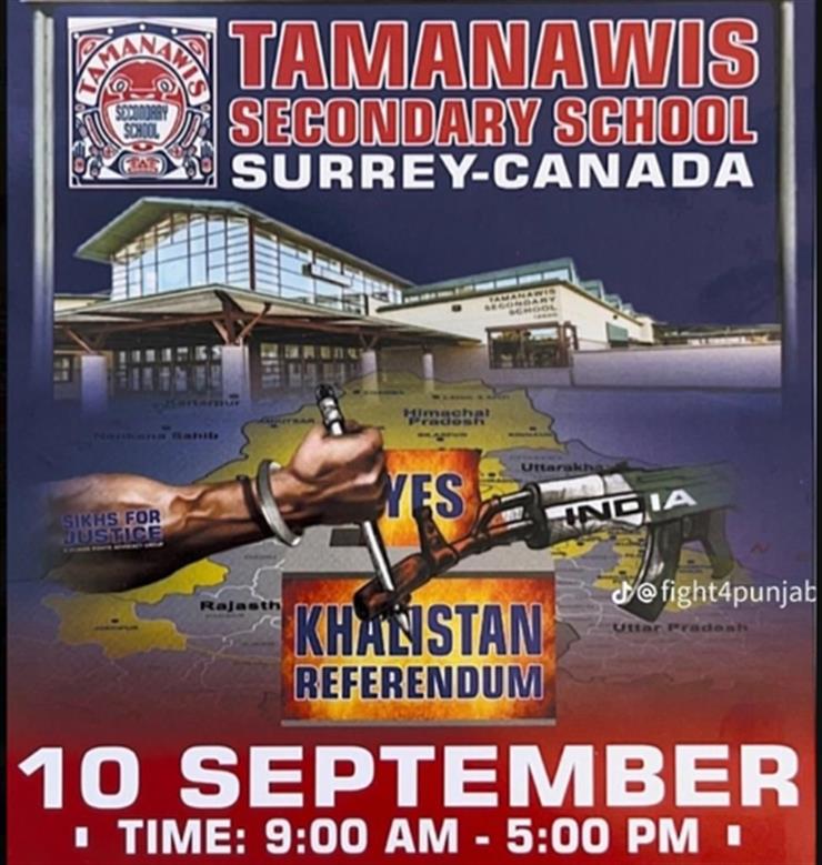 TORONTO: A Khalistan referendum event, scheduled to take place on September 10 at a school in Canada, has been cancelled after images of weapons on the poster were brought to the school authorities' notice by concerned residents.